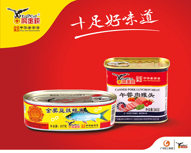 Established in 1912, Eagle Coin has a history of more than a century. At present, its main products include aquatic products, meat and beverages, such as fried dace with salted black beans, anchovy, braised eel, sardine, tuna, luncheon meat, pork with preserved vegetable, grass jelly, stewed papaya with ice candy and snow fungus. After years of development and operation, the brand “Eagle Coin” has won such honors as Famous Band of Chinese Canned Food Industry, China Time-honored Brand and Well-known Trademark of China. The “Eagle Coin” canned Fried Dace with Salted Black Beans is the only canned food that win a gold medal in China Quality Award.