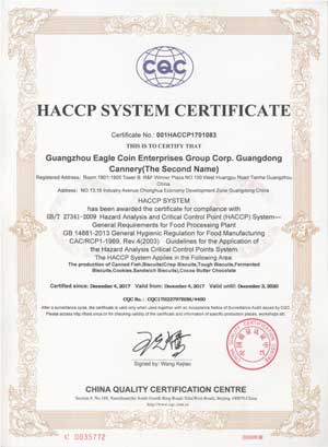 Eagle coin has the certificates of HACCP, ISO22000:2005, and HALAL.